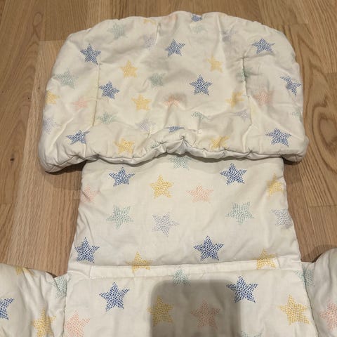Stokke stolpute til barnestol. Består av to polstrede deler som gir ekstra komfort og støtte i sete og rygg på barnestolen. Passer til Stokke barnestol med tilsvarende stoldel. Tekstiltrekk med lett vattering. Egnet for innendørs bruk i spisestol eller høystol for barn.