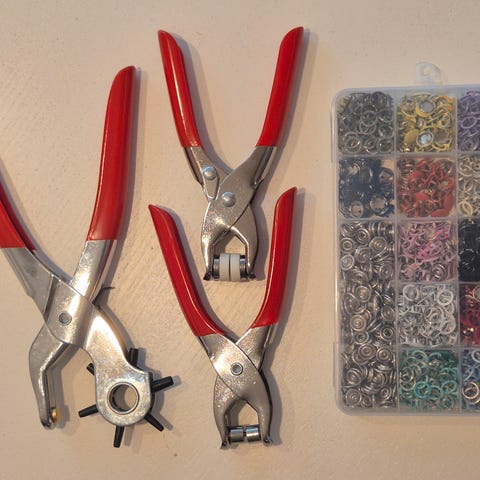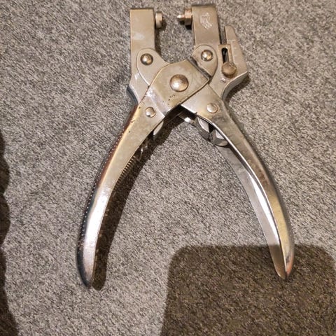Selger en gamle maljetang. Funker som det skulle. Kommer med 200 maljer i sølv,messing, brun, hvitt, svært farger.