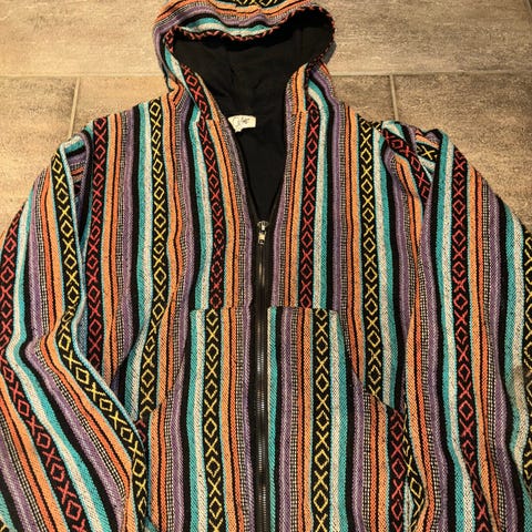 Selger en ubrukt vevd ulljakke som ble kjøpt i Marokko midt på 70-tallet.