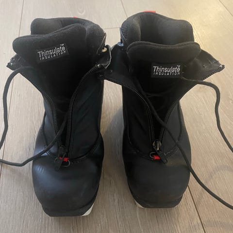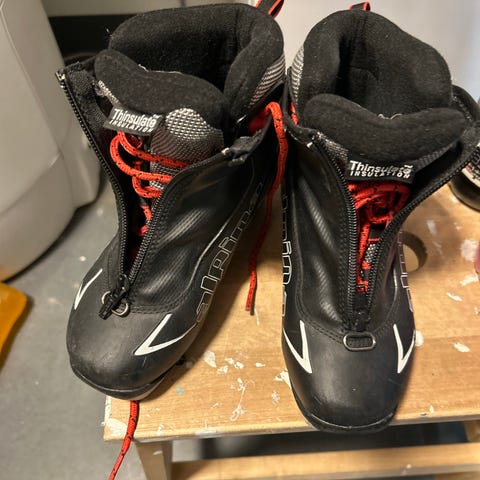 Alpina T5 langrennsstøvler i svart. Støvlene har snøring med overtrekksklaff og glidelås foran. Overdelen er i syntetisk materiale med polstret innside for økt komfort. Sålen er tilpasset NNN-bindingssystem. Egner seg til klassisk langrenn på tur og trening. Pent brukt. Kan sendes eller hentes på Tveita.