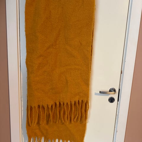 Skjerf på gul bunn med valmuer.