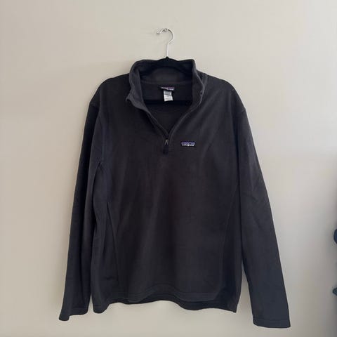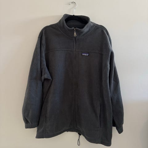 Patagonia fleecejakke for herre i størrelse L. Jakken er svart og laget i fleece-materiale. Den har hel glidelås foran og høy krage. Egnet som mellomlag eller ytterplagg i mildere vær. Passer til hverdagsbruk og friluftsaktiviteter.