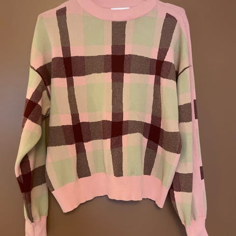 OBS: Dette er en håndstrikket jakke. “Merke” er kun valgt fordi Finn krever det – plagget er ikke butikkjøpt.