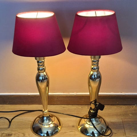 Selger 2 stk bordlamper. Høyde 53 cm og vidde skjerm 27 cm. 200 kr for begge.