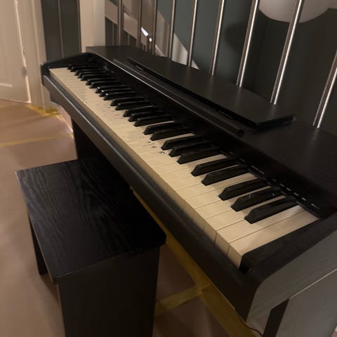 Digitalpiano i hvit utførelse med fullt klaviatur på 88 tangenter. Instrumentet har innebygde lyder som ulike pianoklangfarger, elpiano, orgel og strykere. Panelet viser funksjoner som metronom, reverb, chorus, split og dual, samt demo- og opptaksfunksjon. Det har volumkontroll og display, og tilkoblingsmuligheter under instrumentet, blant annet for hodetelefoner. Egner seg til øving hjemme, undervisning eller akkompagnement.