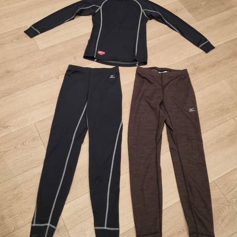 Genseren og buksa er i strl M og kortbuksa i strl S. Genseren har ingen hull, men har gått opp litt i sømmen nederst. Buksa har et par hull som er sydd igjen. Kortbuksa er lite brukt, og er hel. Se bilder. Kan sende flere om ønskelig.
