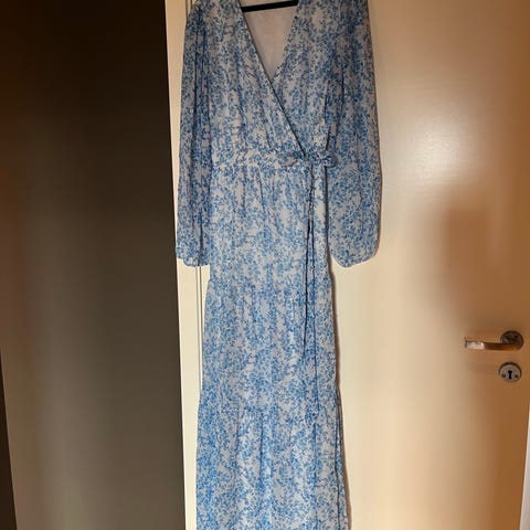 Byida sommerkjole for dame i størrelse XL. Kjolen er laget av bomullsblanding og har blått og hvitt rutete mønster. Modellen har løs passform med flere volanglag i skjørtet og trekvart lange ermer med lett volang nederst. Egnet som sommerkjole til hverdagsbruk.