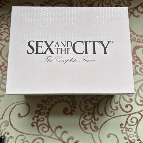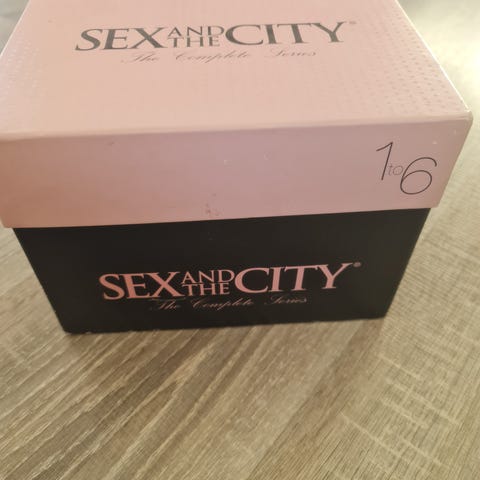 Sex and the City The Complete Series DVD-boks. Samleboks med hele TV-serien fordelt på flere DVD-plater. Esken inneholder sesongene samlet i delbokser, med oversikt over episoder trykket på innsiden av omslagene.