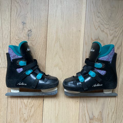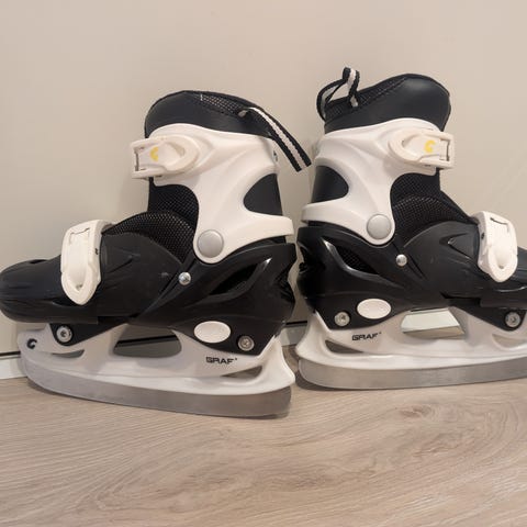 Skaterix justerbare ishockeyskøyter 33-36 for barn i svart, rød og grå farge. Skøytene har hard ytterskall med justerbar størrelse og innvendig polstring for støtte rundt ankel. Lukkes med kombinasjon av snøring og justerbar spenne/rem over vristen for å holde foten på plass. Stålskinne egnet for ishockey og generell skøytebruk på is. Passer til barn som trenger stabile og justerbare skøyter til lek og trening på is.