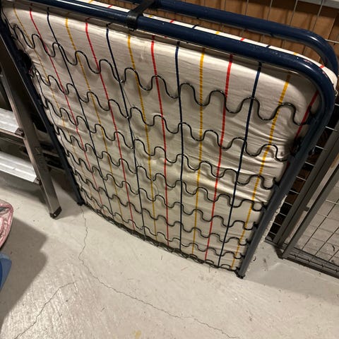 Kjempepraktisk puff/stol som også kan bli gjestemadrass. Sammenleggbar. God å ligge på! Har noen få bruksmerker, men er i god stand. Selges billig (nypris er 1295 kr).