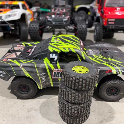 1/5-skala varianten av Arrma Kraton, hele 77cm lang, 11kg, 60cm bred. Bilen har børsteløst oppsett for 8S LiPo og leveres RTR med Spektrum smart-elektronikk og håndkontroll. Denne Kraton-utgaven kommer som EXB og med masse oppgraderte aluminiumdeler.