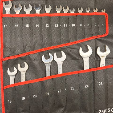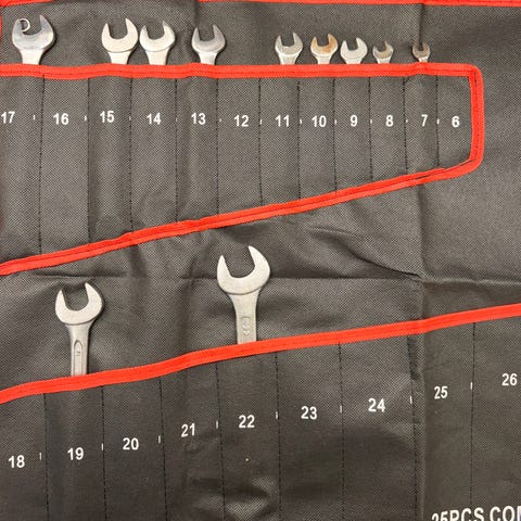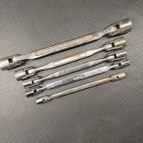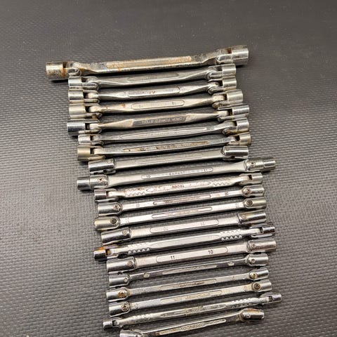 Størrelser og faktisk tilstand fremgår tydelig av bildene. Noe normal bruksslitasje og lett overflatepreg på enkelte nøkler, men ingen synlige brudd eller alvorlige skader. Alt fremstår rett og brukbart.