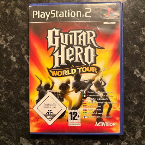 Guitar Hero Metallica spill til Playstation 2. Musikks spill der man spiller gitar- og bandlåter fra Metallica og andre artister ved hjelp av gitar- eller kontroller. Spillet leveres på disk i originalt plastetui med trykket omslag. Aldersgrense 12 år ifølge omslaget. Egnet for bruk på Playstation 2-konsoll som støtter denne typen spilldisker.