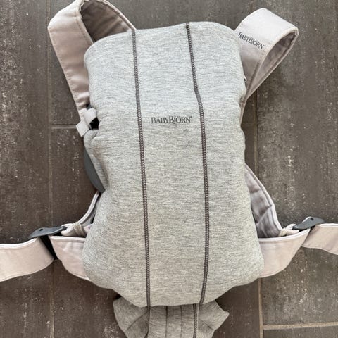 BabyBjörn Bæresele Mini babybæresele i svart. Modellen er en kompakt og enkel bæresele egnet for nyfødte og små barn. Selen har polstrede skulderstropper og støtte rundt rygg og hode for barnet. Justerbare spenner foran og bak gjør det mulig å tilpasse passformen til den som bærer. Bæreselen kan brukes til å bære barnet på magen, både vendt innover mot den som bærer og vendt utover når barnet blir større, i henhold til produsentens anbefalinger. Materialet er vevd tekstil med myk innside mot barnet. Egnet for daglig bruk hjemme og på korte turer der man ønsker å ha barnet nært kroppen og samtidig ha hendene fri.