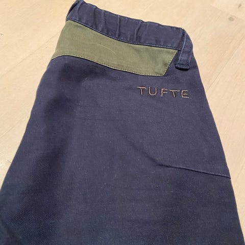 To turbukser i str. 122/128 fra Tufte og Jotunheim. Begge buksene er pent brukt. Tufte buksen har ingen store synlige bruksmerker. Jotunheim buksen har litt oljemerker, hovedsakelig nederst på beinene. Jotunheim buksen er i str. 110, men merket er store i størrelsen så det er i praksis en 122/128. Buksene er veldig like i størrelse.