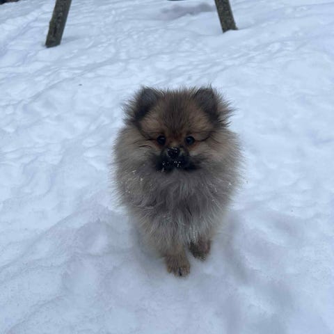 Pappen er bamsete renraset Pomeranian med tipp topp stamtavle, supert gemytt og selvfølgelig helsesjekket.