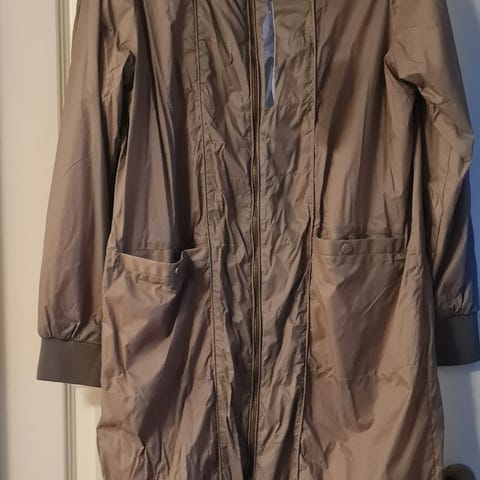 Moss Copenhagen kåpe for dame i størrelse S. Kåpen er grønn og laget i polyester. Den har quiltet mønster med vertikale sømmer og går ned over knærne. Modellen har glidelåslukking foran og innsydd strikk i midjen for en mer definert passform. Ermene er lange med elastikk ved håndleddene. Egnet som ytterjakke i overgangssesonger og milde vinterdager.