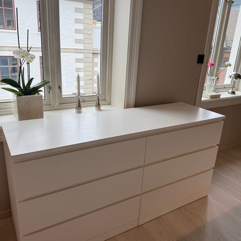 Kommode med glassplate. I fin stand, men noen hakk under glassplate, ikke synlig så lenge man har platen på. Må hentes
