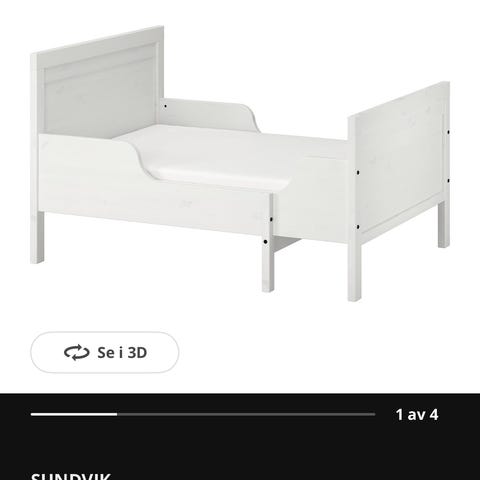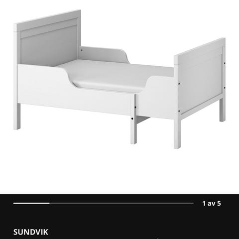 IKEA SUNDVIK uttrekkbar juniorseng i hvit. Sengen kan trekkes ut og tilpasses barnets lengde, opp til 80x200 cm liggemål. Passer godt som overgangsseng.