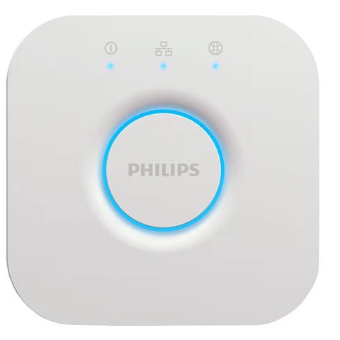 Selger en Philips Hue Bridge smarthus-hub. Hue Bridge fungerer som sentral styringsenhet for Philips Hue-lys og kompatibelt tilbehør, og gjør det mulig å samle og styre belysning gjennom app eller andre støttede systemer i et smarthusoppsett.