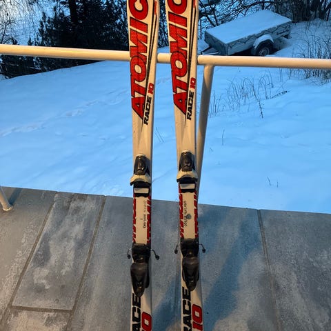 Atomic Race 7 alpinski med integrerte bindinger. Skiene har hvit og rød overside med tydelig Atomic-logo og svart såle. Passer til alpint i preparerte bakker. Bindingene er montert på ski og kan normalt justeres noe etter støvellengde. Egner seg for brukere som ønsker stabile ski til vanlig skikjøring i anlegg.