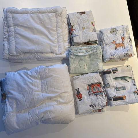 Pluss 6 tisselaken, 3 i str 60x120 og 3 i str 70x140.