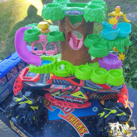 Selger en pakke med hatchimals figurer og salong.