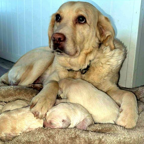 Begge foreldre er herlige familiehunder med et supert gemytt.