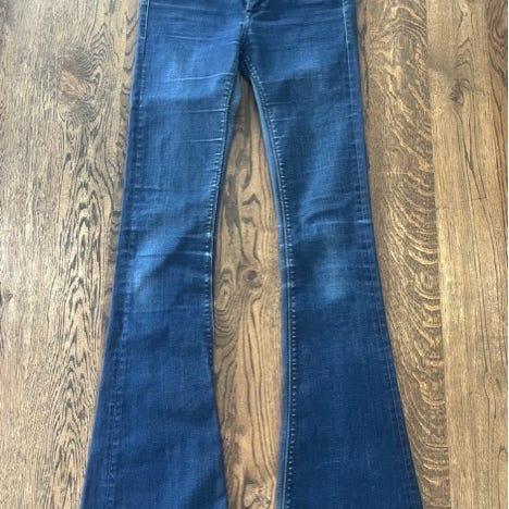 Lois Stone Whiskers jeans for dame i blå denim. Buksen har livvidde W26 og lengde L34. Klassisk femlommersmodell med glidelås og knapp i front.