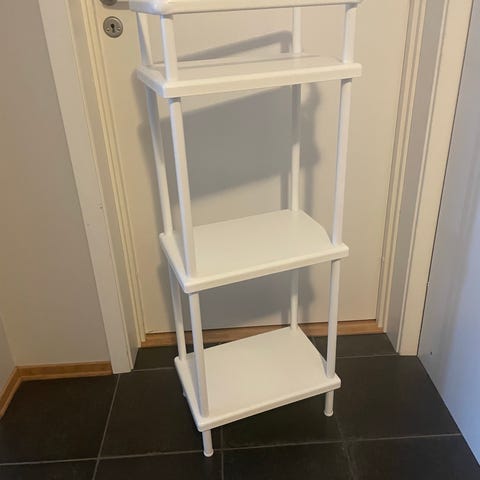 Enkel å sette sammen og demontere. Ein flekk på nederste hylle eg ikkje har fått vekk (se bilde). Dette er fra noe vaskemiddel eg har hatt stående på nederste hylle. Eg kan demontere hylla dersom det er ønskelig. Må hentes på Tasta
