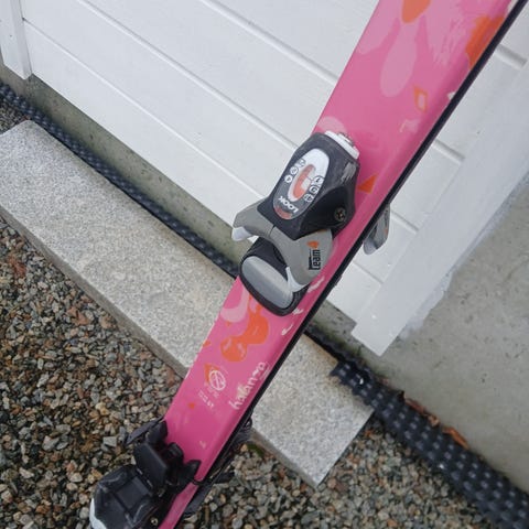 Alpinski med bindinger i rosa farge.