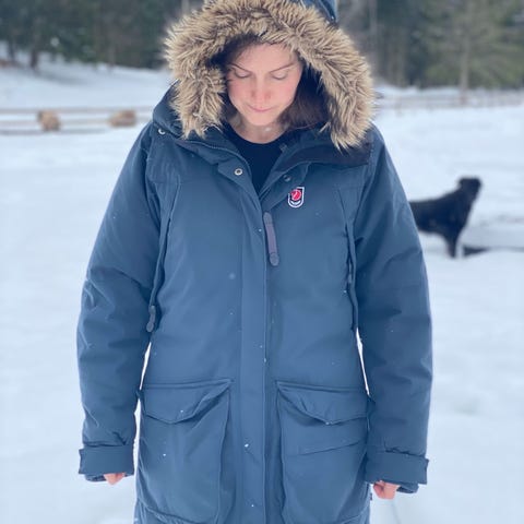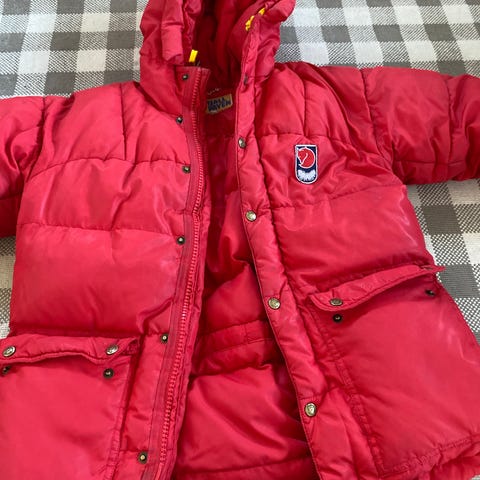 Fjällräven dunjakke/parkas for dame i størrelse M. Jakken er rød med hette og har dunfyll på innsiden. Den har flere frontlommer med klaff og knapp, samt justeringsmuligheter i midjen. Passer som ytterjakke til kaldt vær. Jakken er lite brukt og har minimalt med slitasje.