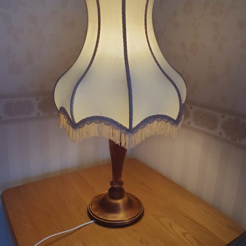 Lampen står stødig i den tunge steinfoten, fotbryter.