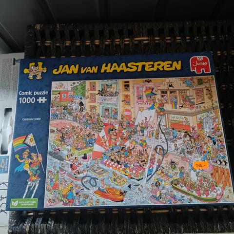 Jan van Haasteren puslespill med 1000 brikker. Motiv i typisk Jan van Haasteren-stil med mange fargerike og humoristiske detaljer. Egnet for ungdom og voksne som liker detaljrike puslespill. Leveres i original eske.