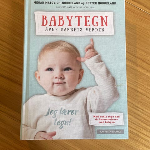 Babytegn bok på norsk. Nesten ikke brukt. Boken handler om babytegn og hvordan man kan bruke tegn som støtte i kommunikasjon med små barn. Inneholder forklaringer og illustrasjoner av tegn, samt tips til hvordan foreldre og omsorgspersoner kan innføre tegn i hverdagen. Egnet for voksne som ønsker å lære mer om tidlig kommunikasjon med barn.