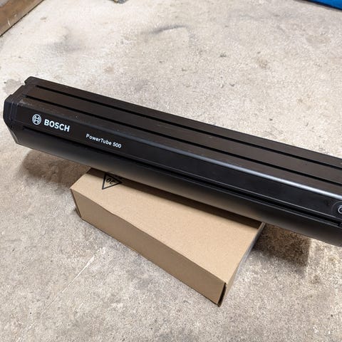 Bosch PowerTube 500 elsykkelbatteri med kapasitet på 500 Wh. Batteriet er et integrert litium-ion batteri beregnet for Bosch elsykkelsystemer. Fargen er svart, og batteriet har innebygd indikator for ladestatus. Passer til kompatible elsykler med Bosch PowerTube-batterisystem.