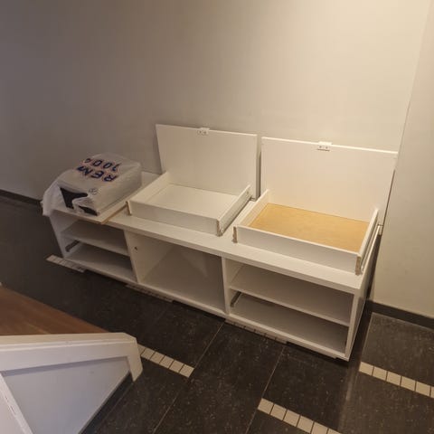 Gis bort - godt brukt. Skuffen er ødelagt (kan fikses tror jeg), og skapdørene henger litt.