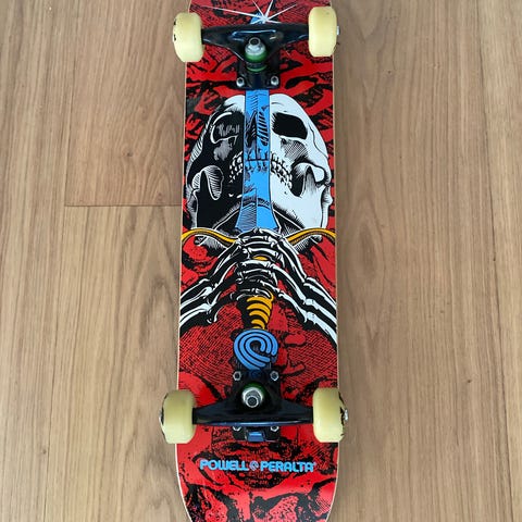 Polar Skate Co skateboard 8.25 bredde. Brettet har indipendant trucker i metall og hvite hjul. Oversiden har sort griptape med Polar-logo.