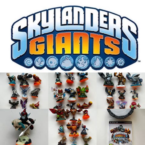 Skylanders Giants spillpakke for PlayStation 3. Pakken inneholder spillet Skylanders Giants på PS3, to portaler med kabeltilkobling og flere Skylanders-figurer fra Giants-serien og tilhørende serier. Bare ta kontakt om du lurer på noe