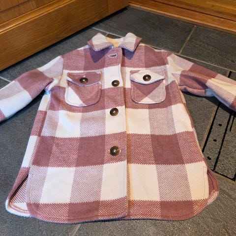 Myk og behagelig skjortejakke fra Lindex Kids i fine lilla, beige og brune toner. Perfekt som lett jakke eller tykk skjorte – passer godt til både hverdag og barnehage.