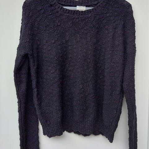 Zara genser for dame i størrelse XS. Genseren er blå og laget i bomull. Den har rund hals og lange ermer, med grovstrikket struktur. Passer til hverdagsbruk og kan kombineres med både bukser og skjørt.