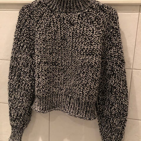 H&M genser for dame i størrelse S. Genseren er svart og laget i polyester. Den har lange ermer og firkantet utringning. Stoffet er ribbestrikket, noe som gir en tettsittende passform. Passer til hverdagsbruk eller som enkel basisgenser under jakker og cardigans.