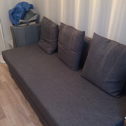 Praktisk og god sovesofa med oppbevaring under, og enkel og slå ut og opp