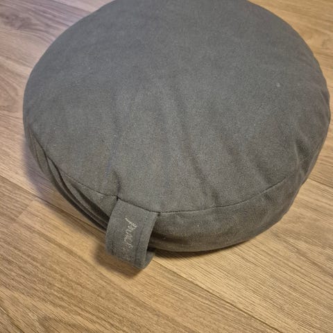 MyYoga meditasjonspute i beige lin. Puten har en ergonomisk, hjerteformet utforming som gir støtte ved sittende meditasjon og yogapraksis. Den er fylt slik at den gir fast, men behagelig sittehøyde. Trekket har brodert «MY YOGA» på oversiden og bærestropp på toppen for enkel håndtering og flytting. Egner seg til meditasjon, yoga og andre sittende avspenningsøvelser.