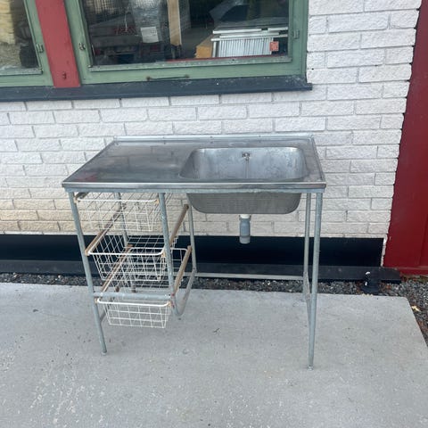 Denne vasken er 150 cm bred totalt. Lengde på 60 cm. Den største kummen er 34 cm bred og 34 cm dyp og 34 cm lang. Den minste kummen er 13.5 cm dyp og 38.5 cm bred og 34 cm lang.