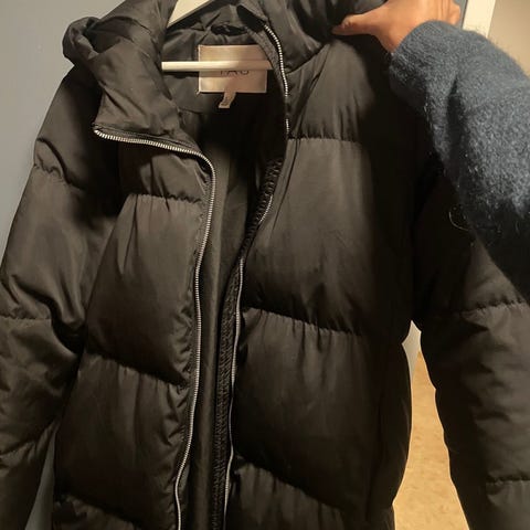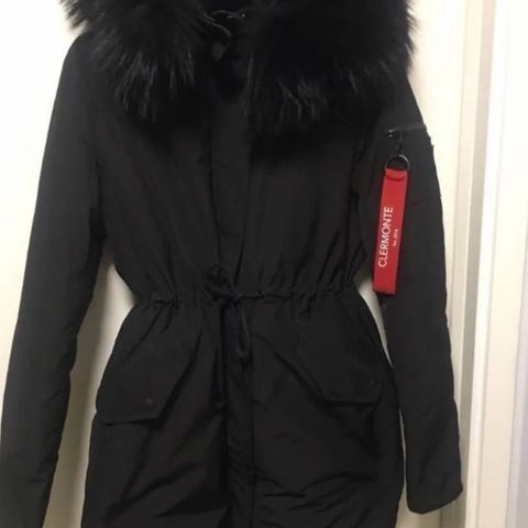 Godt brukt parkas fra Clermonte med avtagbar ekte pels. Både pelsen i hetta og på kragen kan tas av. Løkka inni jakka til å henge den opp er ødelagt. Magneten på den ene lomma er «sklidd ut» så får ikke holdt lomma ordenglig lukket. Trenger nok en rens.