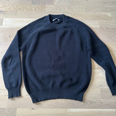 H&M genser for herre i størrelse M. Genseren er svart og laget i en ullblanding (50 % polyester og 50 % ull). Klassisk modell med rund hals, lange ermer og ribbekanter nederst og ved ermene. Passer til hverdagsbruk og som et ekstra lag på kjølige dager.