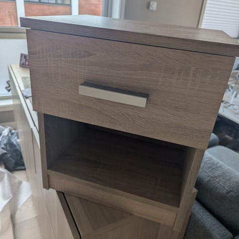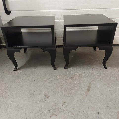 2 sidebord / nattbord med skap i tre