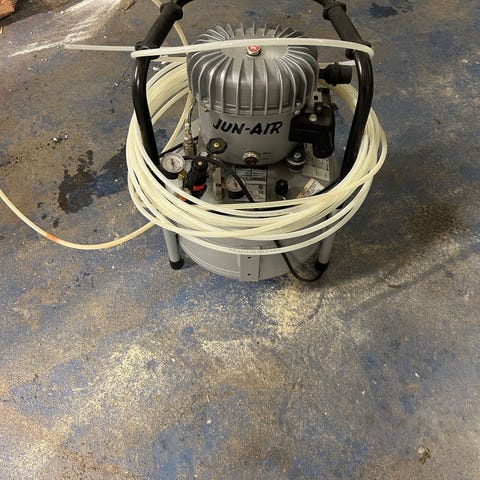 Moe & Co ZJ30 kompressor med horisontal tank på 90 liter i blå utførelse.