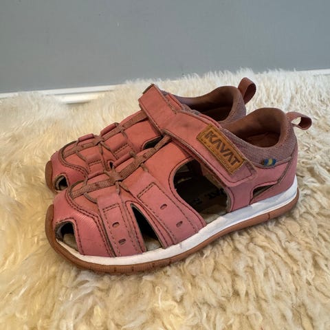 Kavat sandaler til barn i størrelse 29. Modellen er unisex og har lukket tå med åpne partier som gir lufting. Sandalene har justerbar borrelåsrem rundt ankelen for enkel tilpasning. Farge lilla.
